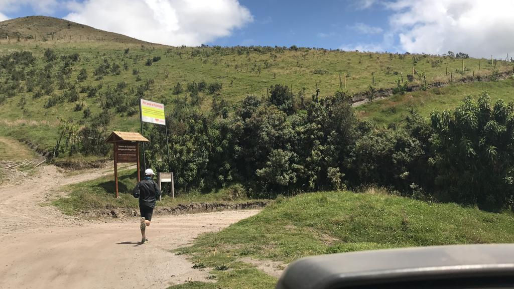 I’m pushing hard knowing that I’m in the last 5km now. I run a few kilometers in the 3’10s (5’0x / mile) and slow a bit as things flatten out. Finally, we come down a steep descent and we turn left and find one last hill. After almost 9 miles of descent, it feels like another 15,000 ft summit and I seriously almost start walking, my legs are so fried, but I crest the hill and follow the road into town, a classic tiny Andean pueblo, dogs and old 4x4s lining the streets, curious Ecuadorians poking their heads out of shops at the dirty, skinny gringo seemingly sprinting down the middle of the road, before one last right turn and we’re in the park, our arbitrary finish line, and I run up to the fountain in the center, flanked by 4 stray dogs. It’s over. 5 hours and 56 minutes.